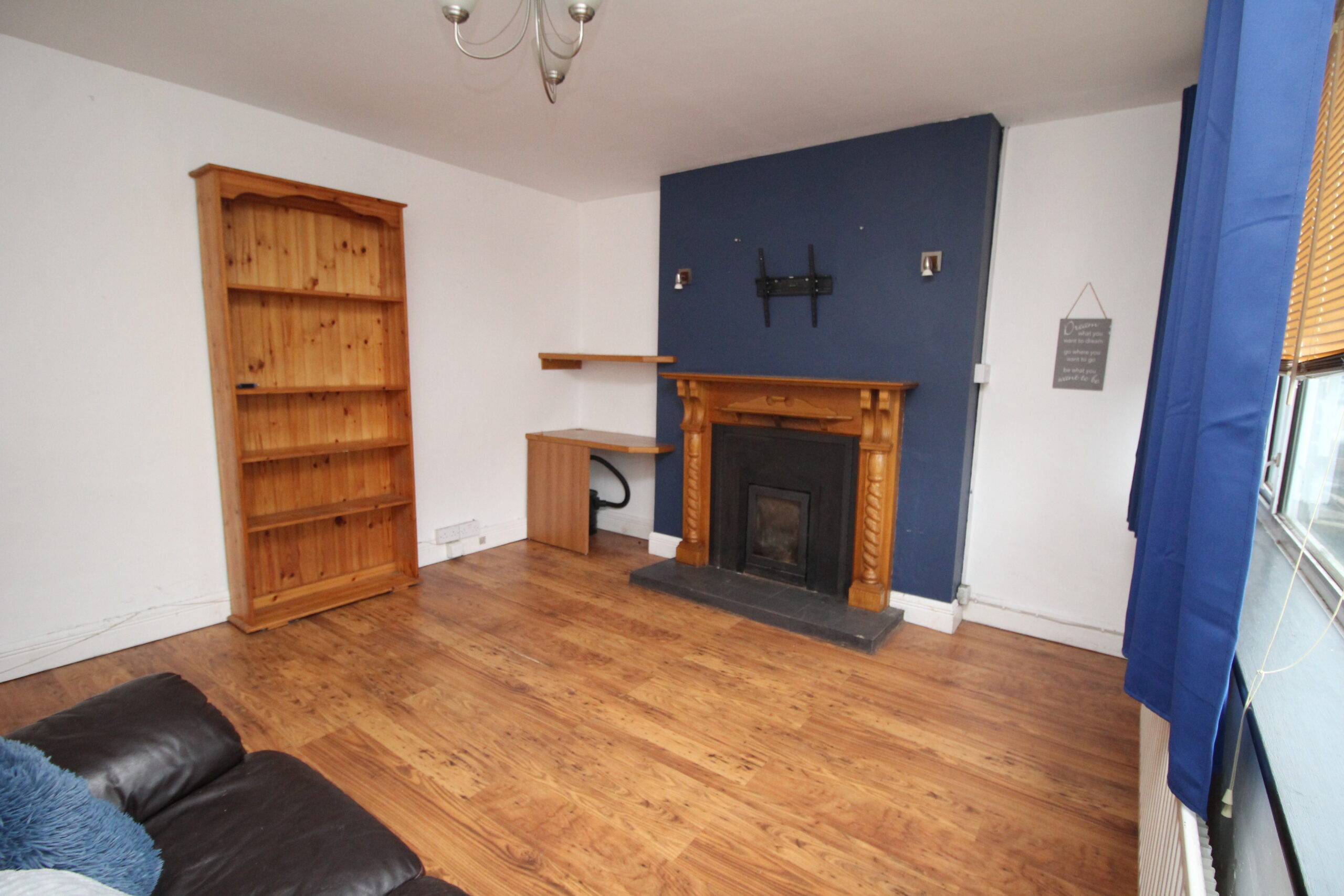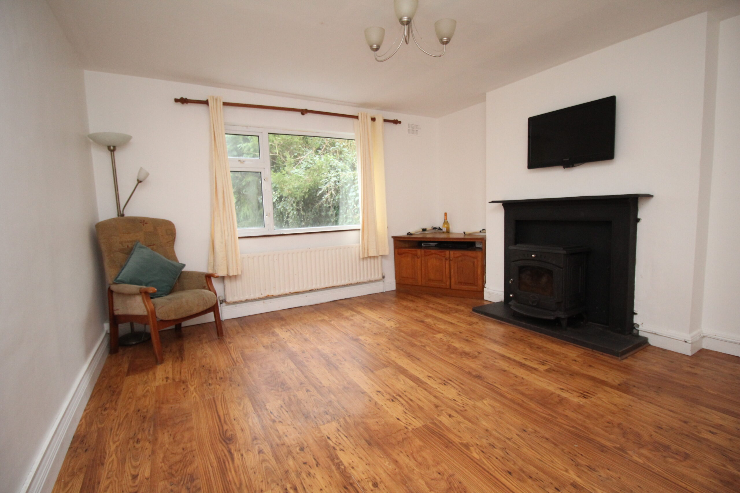 Sitting Room : 3.6 x 3.9. Laminate flooring, fireplace with inset stove.