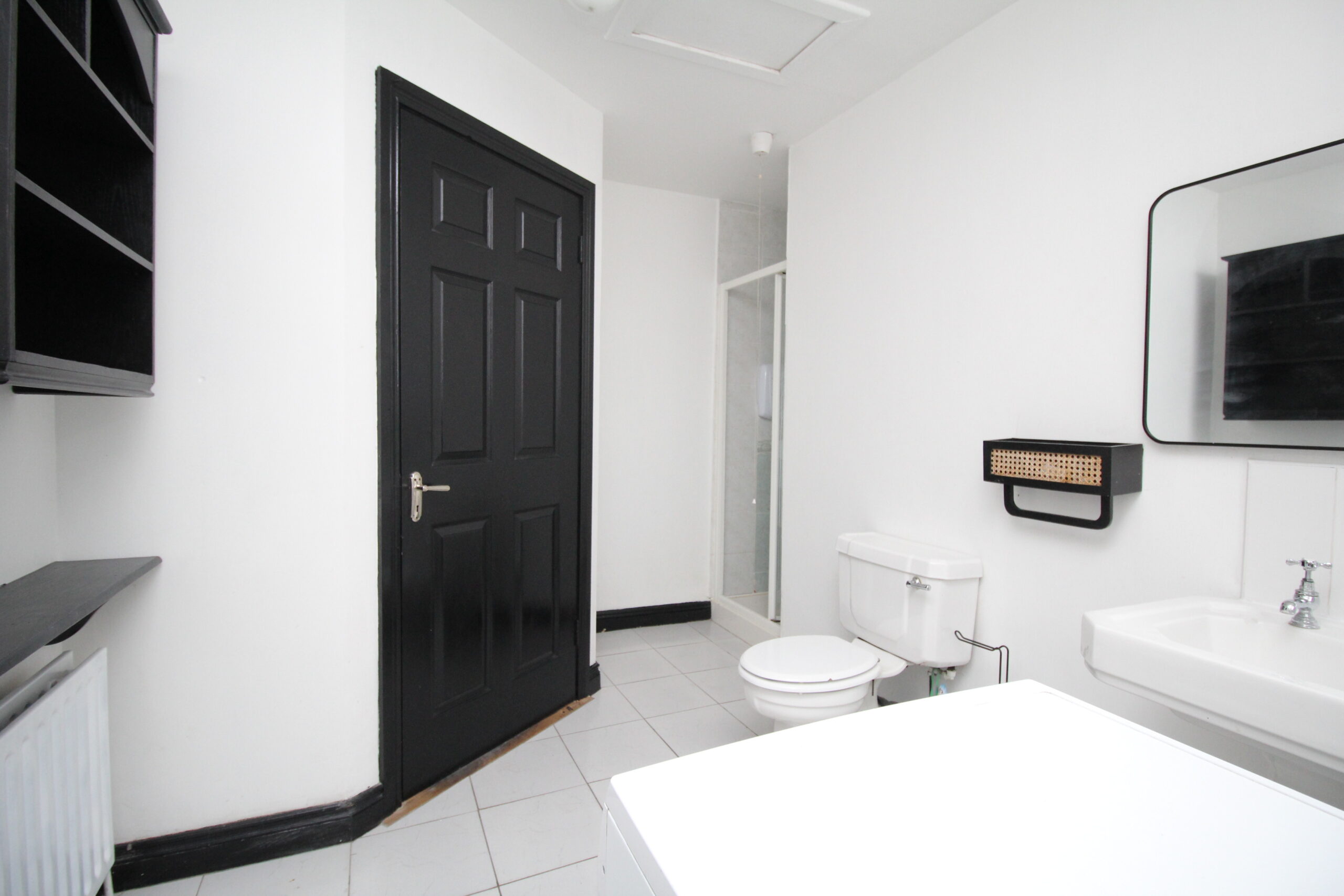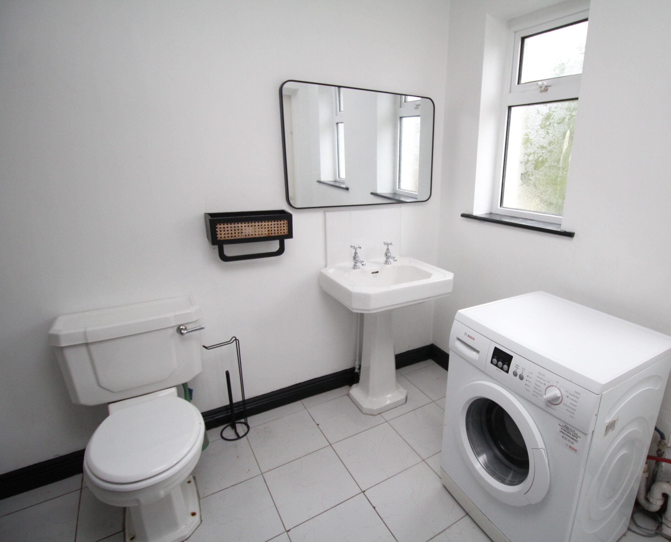 Bathroom : 1.9 x 1.6. Wall & floor tiling, shower over bath.