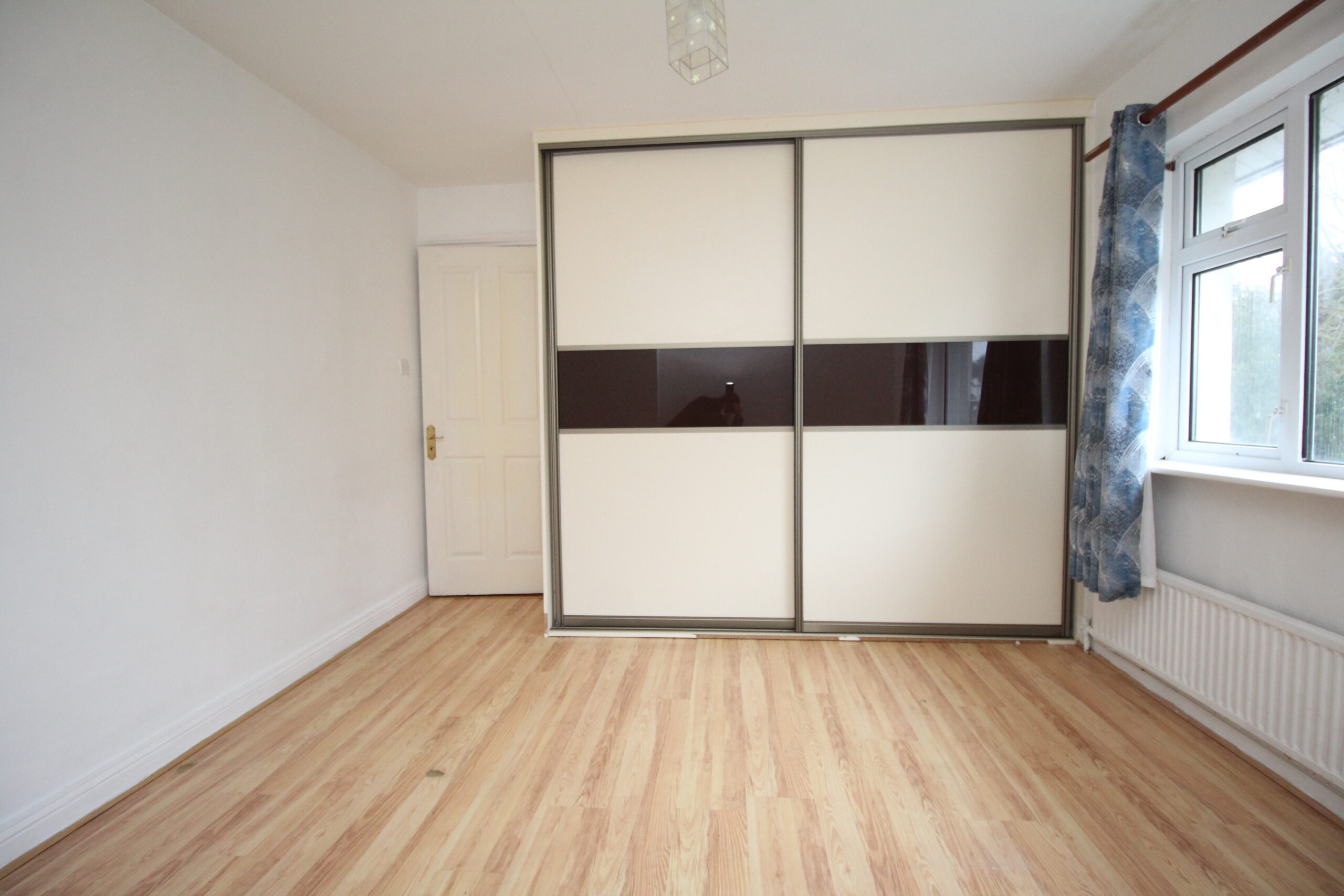 Bedroom 1. : 3.7 x 4.3. Laminate flooring, built in wardrobes.